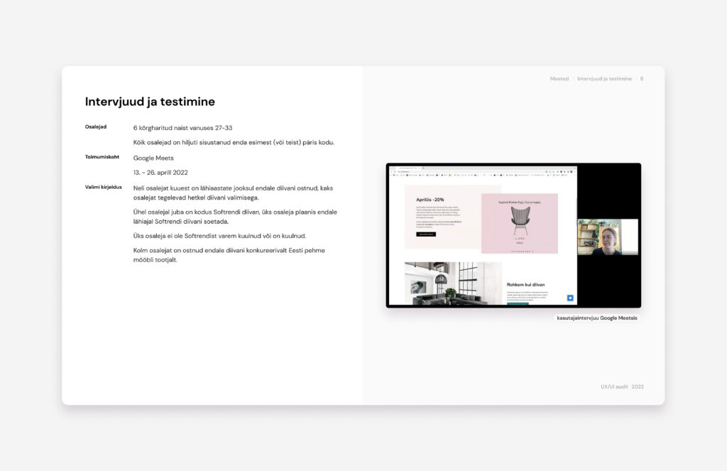 on user interviews and testing, and the results of heuristic evaluation. The audit offers possible solutions to the problems identified during the study: the result is a comprehensive and visualized list of changes that would improve the user experience on Softrend’s website. The written part of the thesis gives an overview of the theoretical starting points and methodology of the work, the course of the analysis and the results