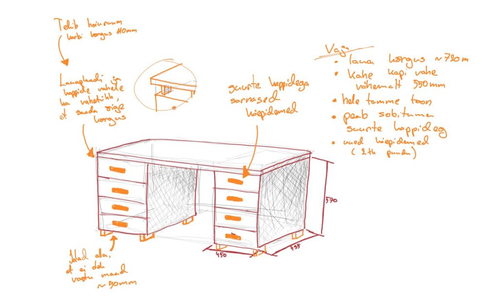 Lõputööks sain inspiratsiooni vajadusest leida sisustusprobleemidele lahendusi ja soovist vastata vajadustele võimalikult aruka rohepöörde võtmes. Sellest tulenevalt valisin lõputöö teemaks teadliku taaskasutuse.