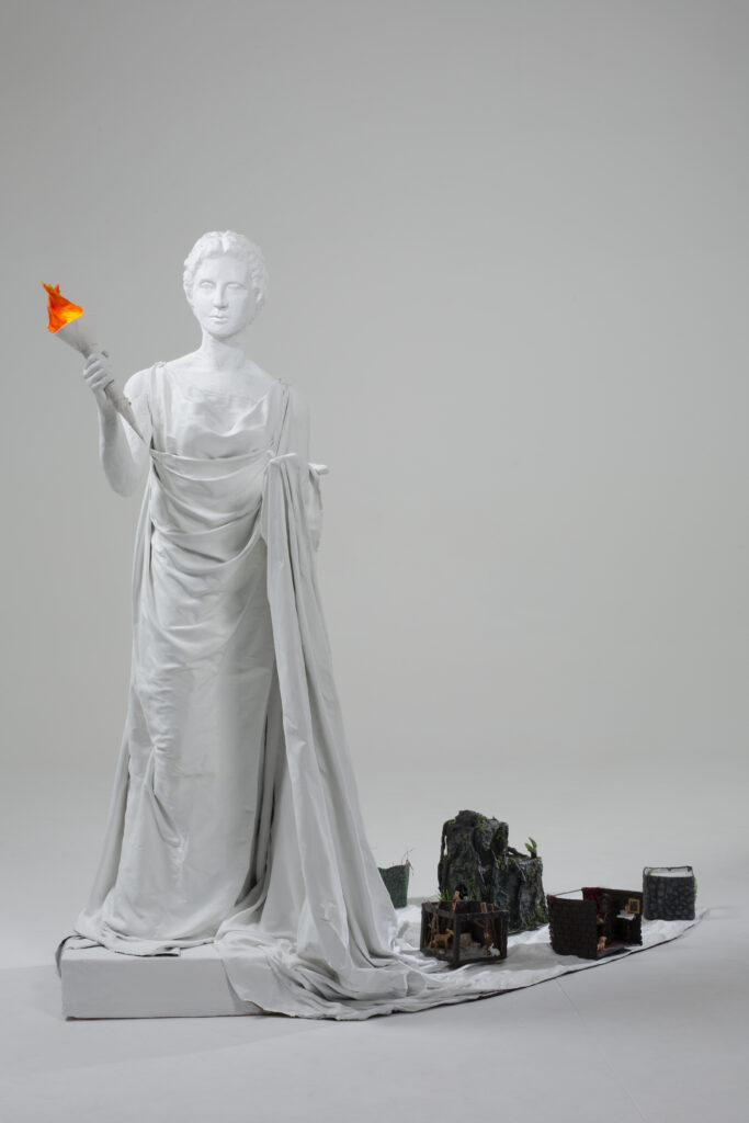 Looking at the sculpture and knowing her story, I realized that the only person I turn to is my mother. She has always been there for me. I created this sculpture with the hope that, as visitors look at it, they will recognize their own guide when they are at a crossroads — someone who is also a guide and helper in their life.