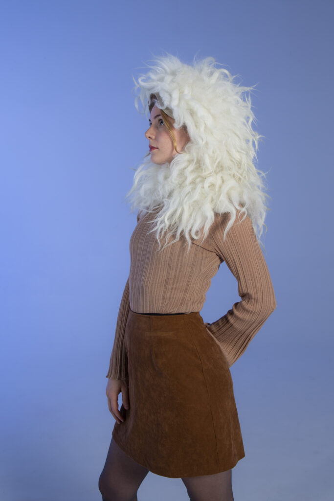 The goal of the work is to experiment with sheepskin processing techniques in order to add personality and value to the material. The techniques I experiment with include heating, dyeing, braiding, and caring for the fur, with the aim of developing a new and functional design technique.