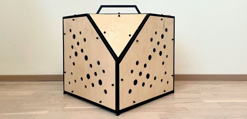 The third chapter of the thesis was dealing with practical work. The results of the survey and the characteristics of the study were used during the design developing process. Sketching and modeling resulted in a form that not only met the daily needs of users (both cats and cats’ owners) but also enabled easier transportation. As cats like to have an overview of the territory from the heights, the possibility to install the cage on the wall was created. In addition, to reduce stress in the cat and to provide an opportunity to mark their territory, a scratching surface was added. The ready-made product model was custom-made out of a metal frame and plywood.
