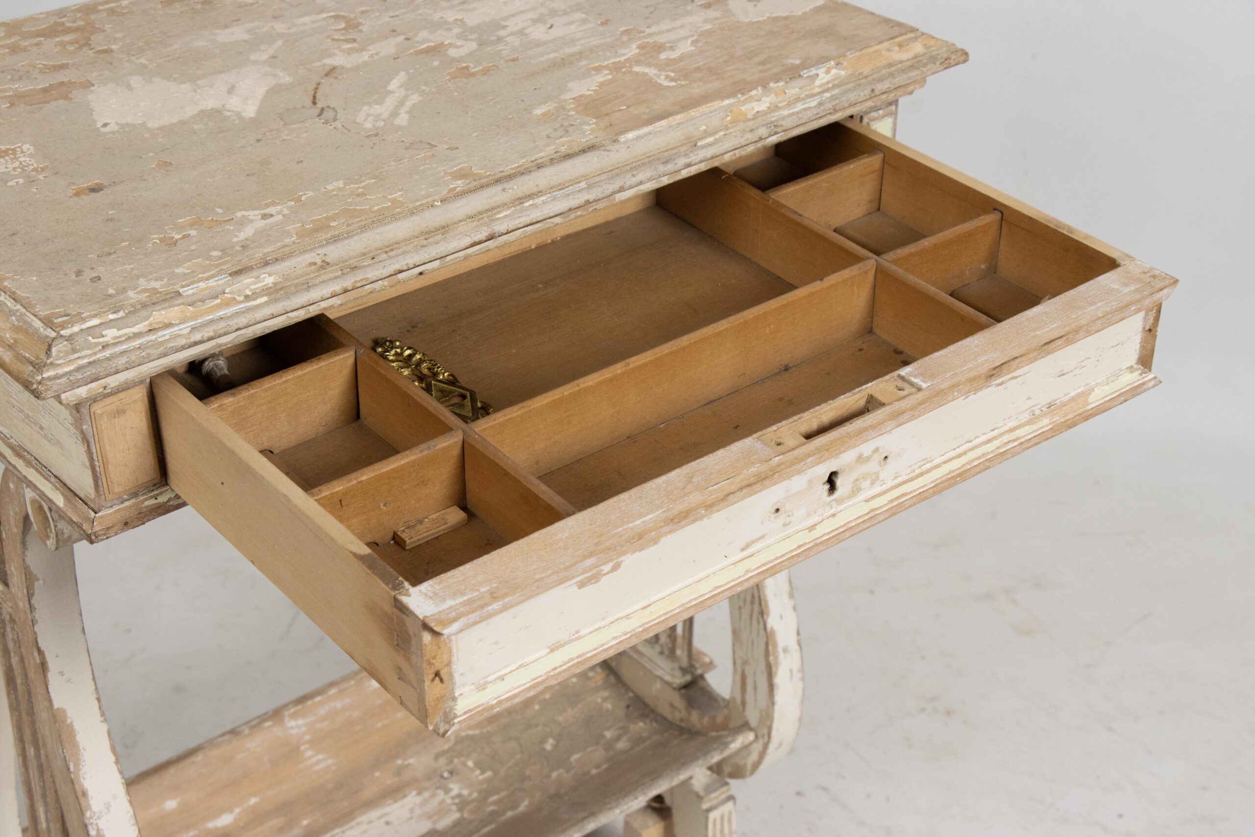 The topic of my final project is the restoration and conservation of a polychrome-finished handicraft table dating from the early 19th century. I explore the role of handicrafts and the handicraft table in the everyday life of women of that era to better understand how the culture of the time is reflected in the object. The work is a commissioned project — the aim is to make the table functionally usable while preserving its historical value, in accordance with the client’s wishes.