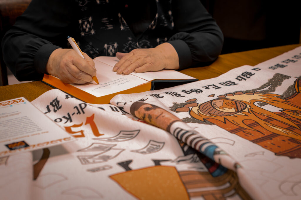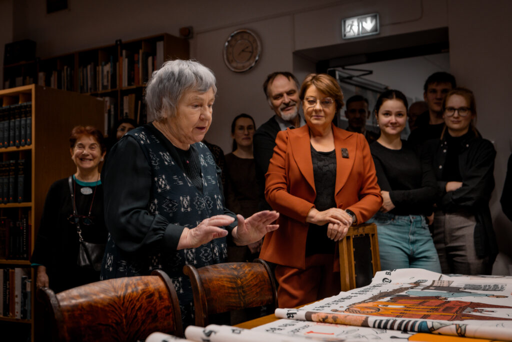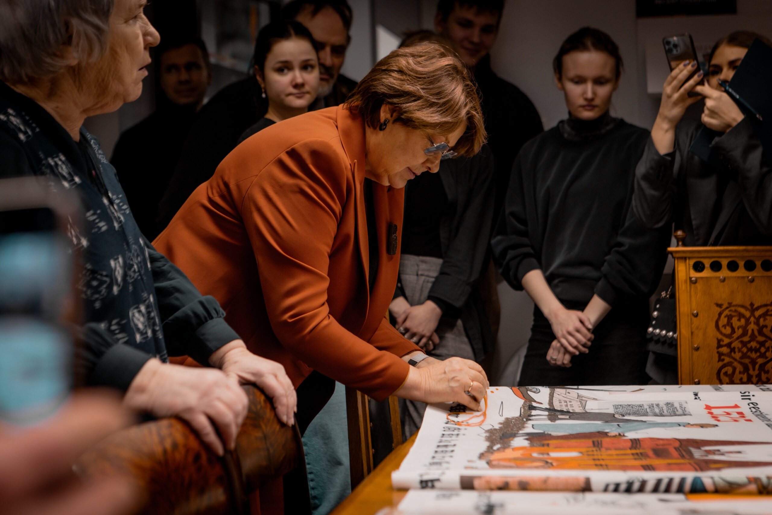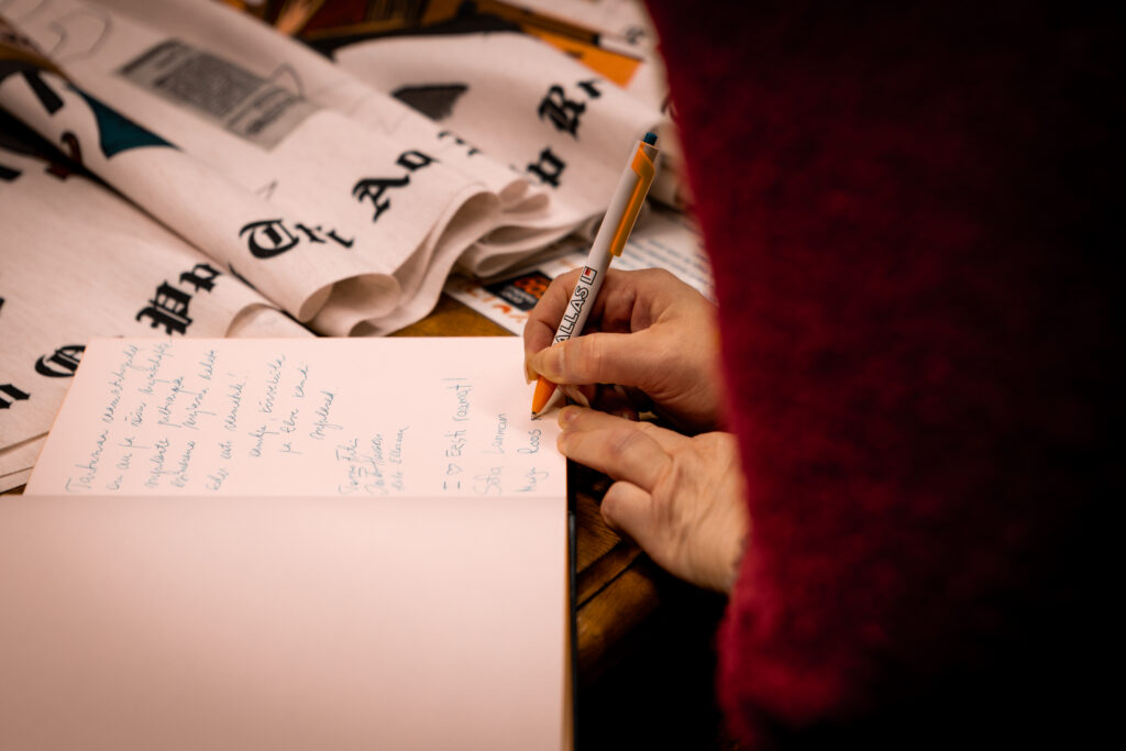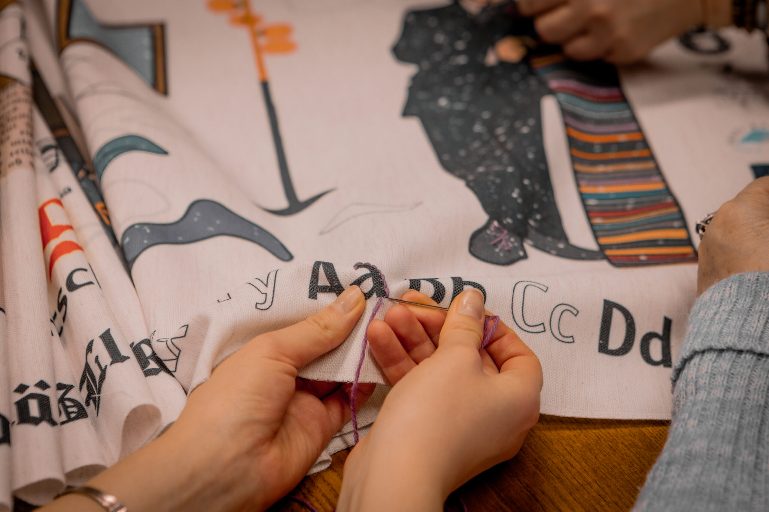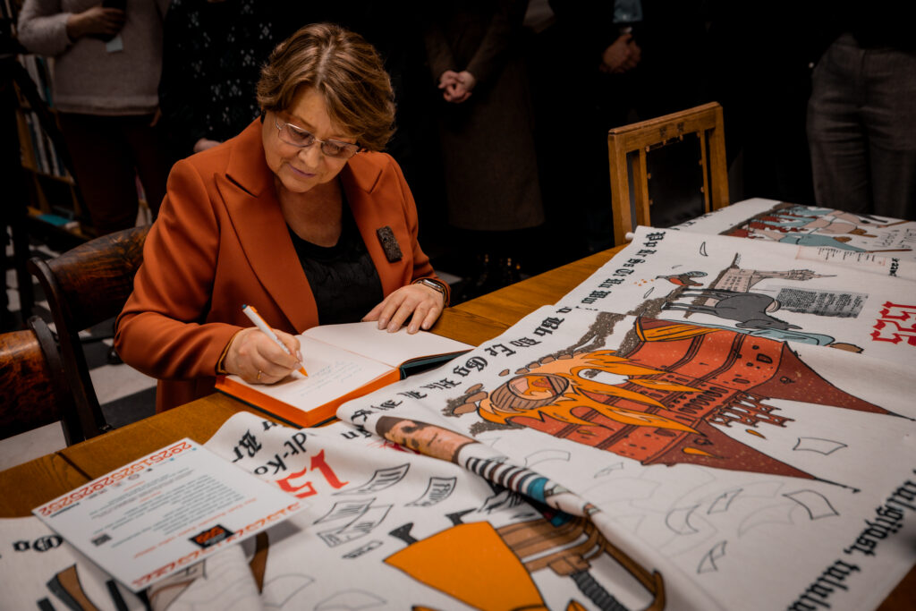 The tapestry “500 Years of the Estonian Book” depicts key events in the history of the Estonian book through visual imagery, as well as dates and textual references. The 16.5-meter-long tapestry, featuring a design digitally printed onto fabric, will be inaugurated with its first stitches at a ceremonial opening event at Pallas. Participants will include Sirje Karis, Anu Raud, Krista Aru, Mart Jagomägi, representatives of the Estonian Folk Art and Craft Union, members of the Year of the Estonian Book steering committee, and representatives of Pallas. The tapestry will also be on display in the Pallas library on February 12. Over the course of the year, it will travel to all counties of Estonia, where it will continue to be embroidered as a community project in local libraries.