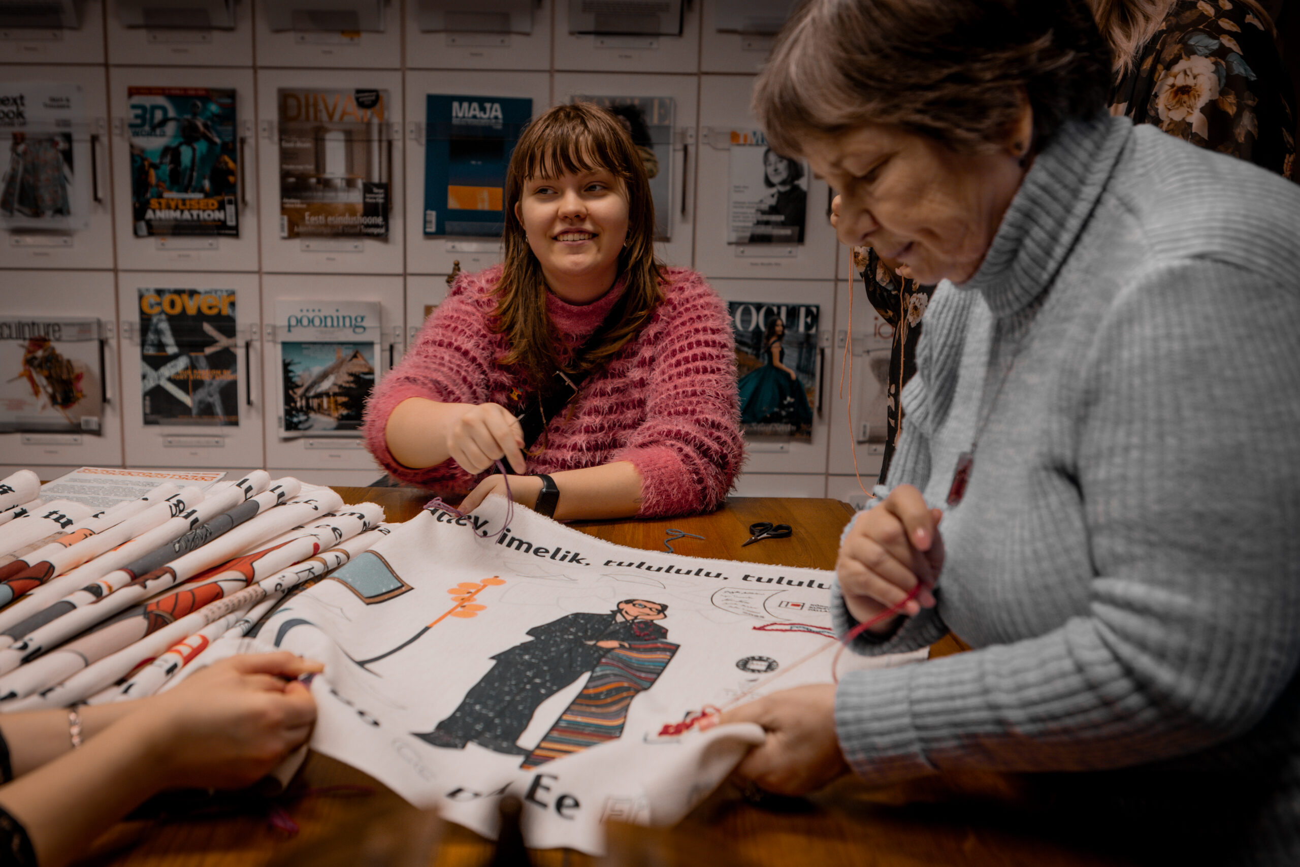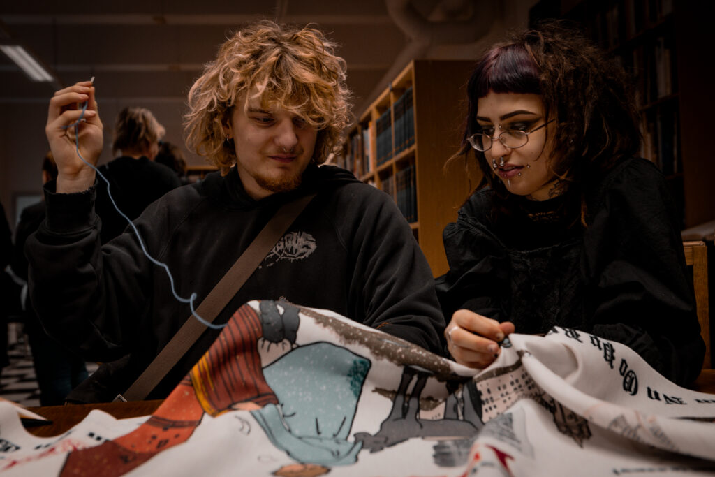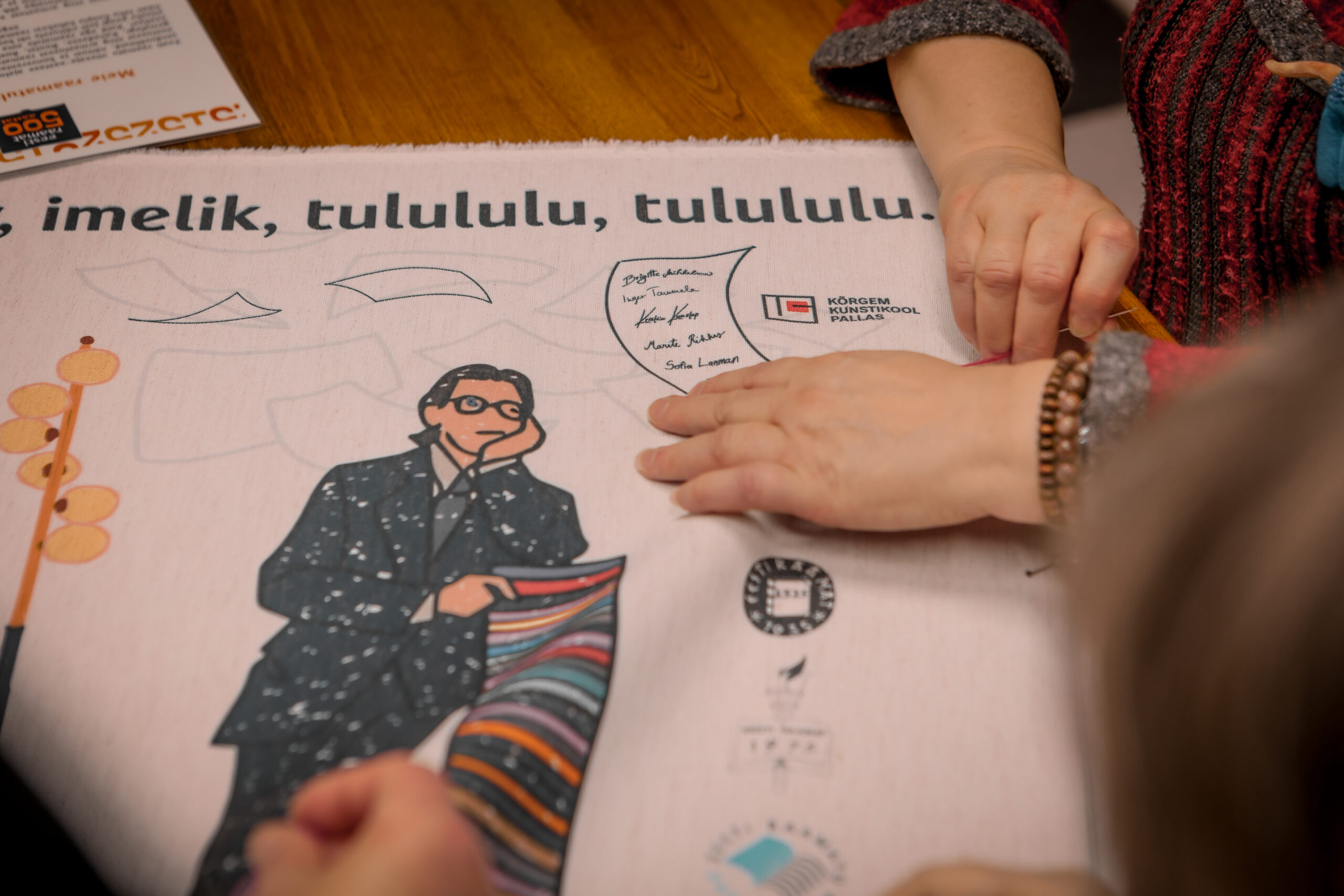On February 11, 2025, the embroidery of the Year of the Estonian Book tapestry, based on a design by students of the Department of Textile will begin in the Pallas library. The first stitches will be made by Sirje Karis, spouse of the President of the Republic of Estonia, and textile artist Anu Raud. Thereafter, people across Estonia will have the opportunity to contribute to the completion of the tapestry.